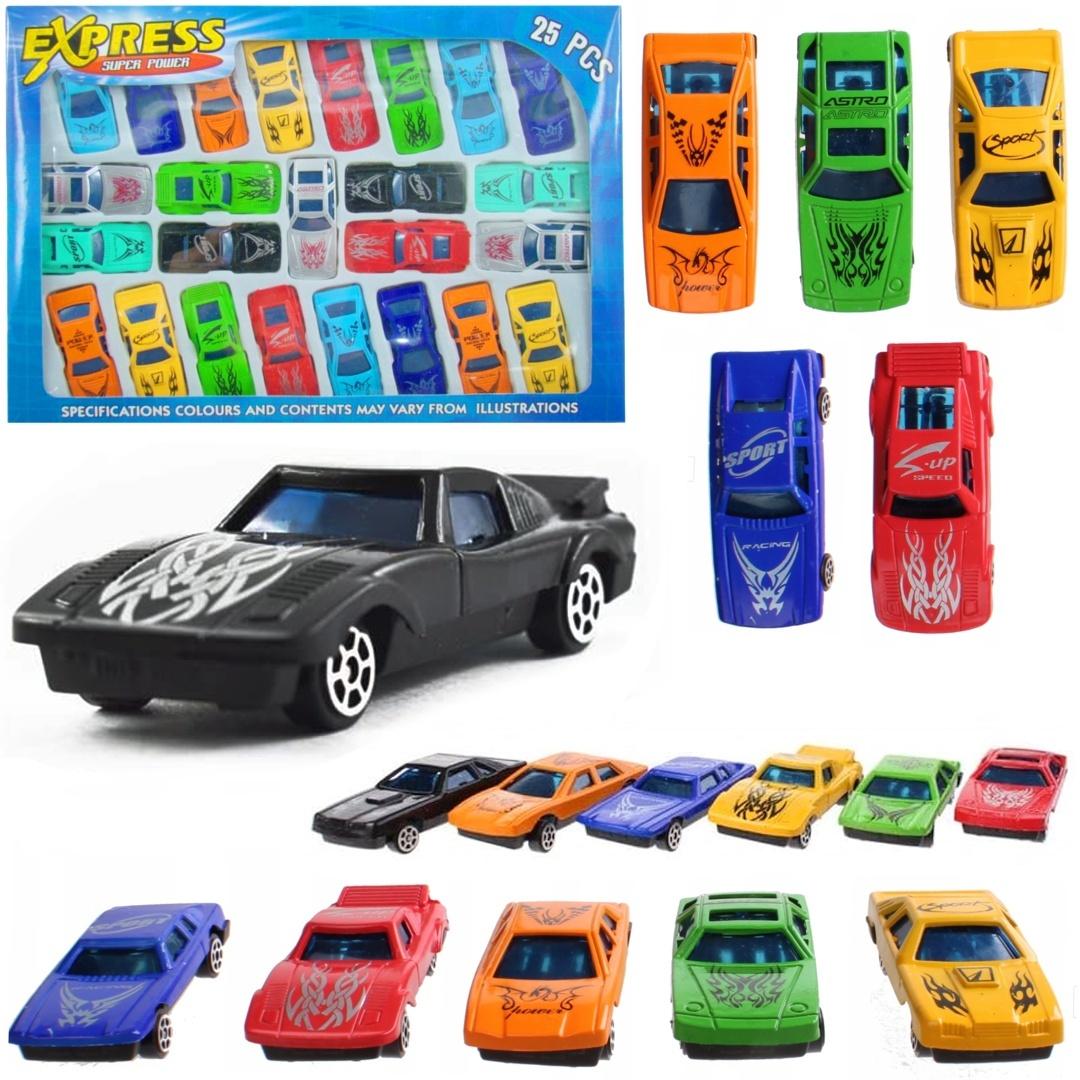 Opis produktuZasady bezpieczeństwaZestaw Samochodzików EXPRESS SUPER POWER - 25 Resoraków Sportowych Przygotuj się na niezapomniane wyścigi z ogromnym zestawem 25 samochodzików z serii EXPRESS SUPER POWER! To idealny prezent dla każdego młodego entuzjasty motoryzacji, gwarantujący godziny dynamicznej i kreatywnej zabawy. Cechy zestawu: Bogata kolekcja: Zestaw zawiera aż 25 unikalnych modeli sportowych samochodów, co pozwala na organizowanie wielkich wyścigów i budowanie własnej floty. Sportowy design: Auta charakteryzują się dynamicznymi, agresywnymi kształtami i są ozdobione stylowymi grafikami (np. płomienie, paski), nadającymi im wyścigowy wygląd. Na karoserii widoczne są napisy takie jak "SPORT", "SPEED" czy "RACING". Intensywne kolory: Modele występują w różnorodnej kolorystyce (czerwień, żółć, zieleń, pomarańcz, niebieski, czerń), co ułatwia identyfikację i dodaje atrakcyjności zabawie. Materiał: Samochodziki wykonane są z trwałego tworzywa, przystosowane do szybkiej jazdy i intensywnej zabawy. Wielkość opakowania: 34x23x2 cm Idealne do zabawy: Zestaw jest doskonały do odgrywania ról, tworzenia własnych scenariuszy wyścigowych oraz do poszerzania kolekcji resoraków. Zapewni dziecku rozrywkę na długi czas. x