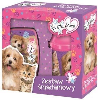 Zestaw składa się z bidonu i śniadaniówki. Oba elementy wykonane są z wysokiej jakości tworzywa, przystosowanego do kontaktu z żywnością i spełniającego normy europejskie. Zestaw idealnie sprawdza się w szkole i na wycieczkach. Produkty zdobią graficzne motywy licencyjne My Little Friend.