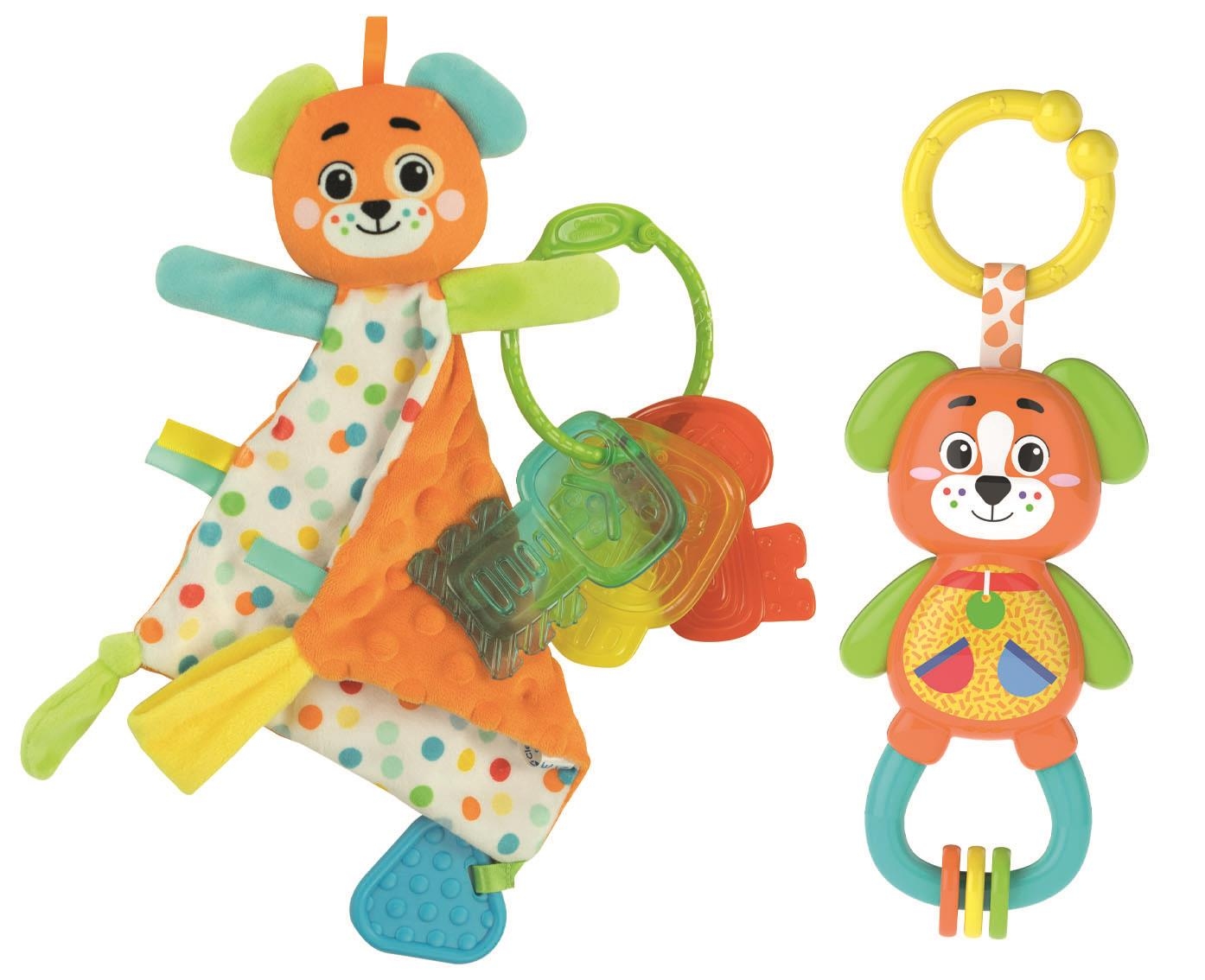 Opis produktuZasady bezpieczeństwaZestaw ze wszystkim, co niezbędne do powitania nowo narodzonego maluszka: miękka przytulanka, kolorowa grzechotka i klucze-gryzaczki z miękkiego plastiku. Wesołe kolory, dźwięki, ruchome elementy oraz różne materiały dobrano w taki sposób, aby wspomagały multisensoryczny rozwój dziecka.