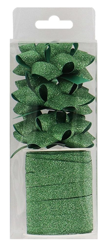Zestaw wstążka brokatowa 1cm x 10m + 3 rozetki 6 cm