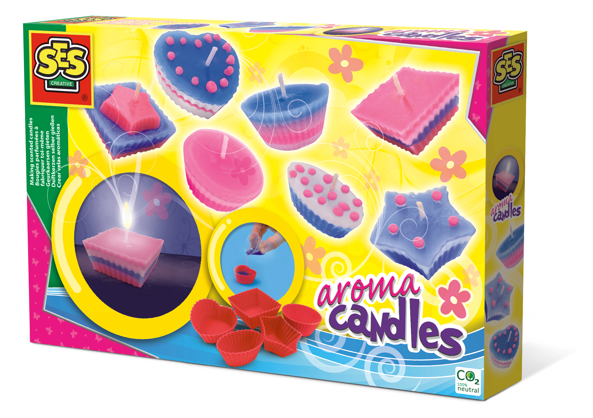 Zestaw do samodzielnego odlania pachnących świeczek. Zestaw zawiera: trzy sztabki pachnącego wosku , 5 silikonowych foremek, knoty, szablony do montowania knotów, kubeczek do topienia wosku, obrazkową instrukcję.
