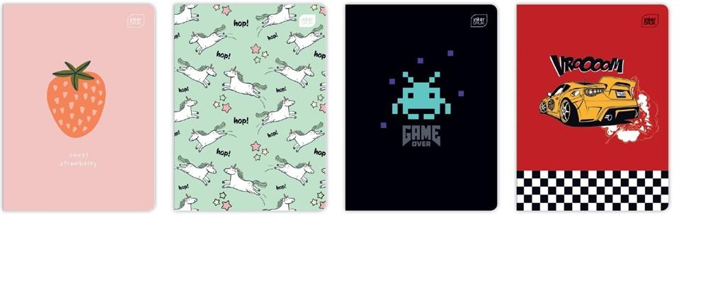 Zeszyt A5 kolorowa kratka, oprawa broszurowa, mix wzorów. Producent Interdruk.