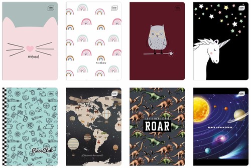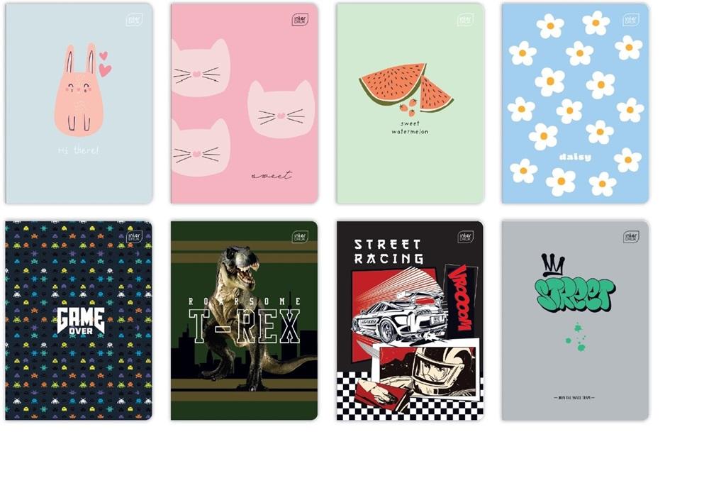Zeszyt A5 kratka, 16 kartek, mix wzorów. 20 sztuk w opakowaniu zbiorczym. Producent Interdruk.