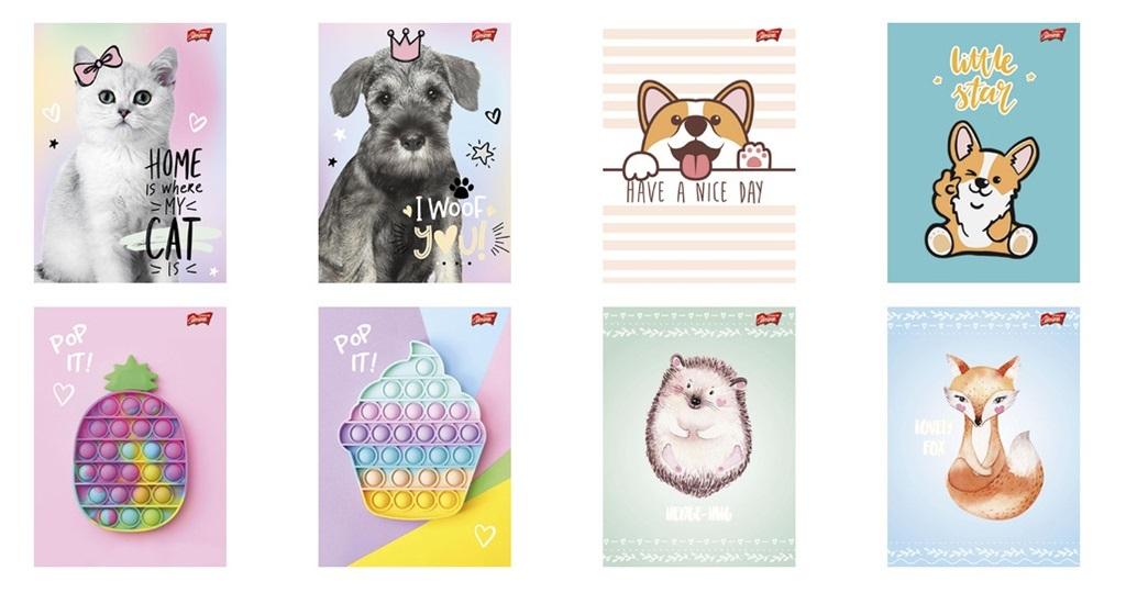 Zeszyt laminowany A5, linia podwójna, 16 kartek, mix wzorów3,15 sztuk w opakowaniu zbiorczym.
