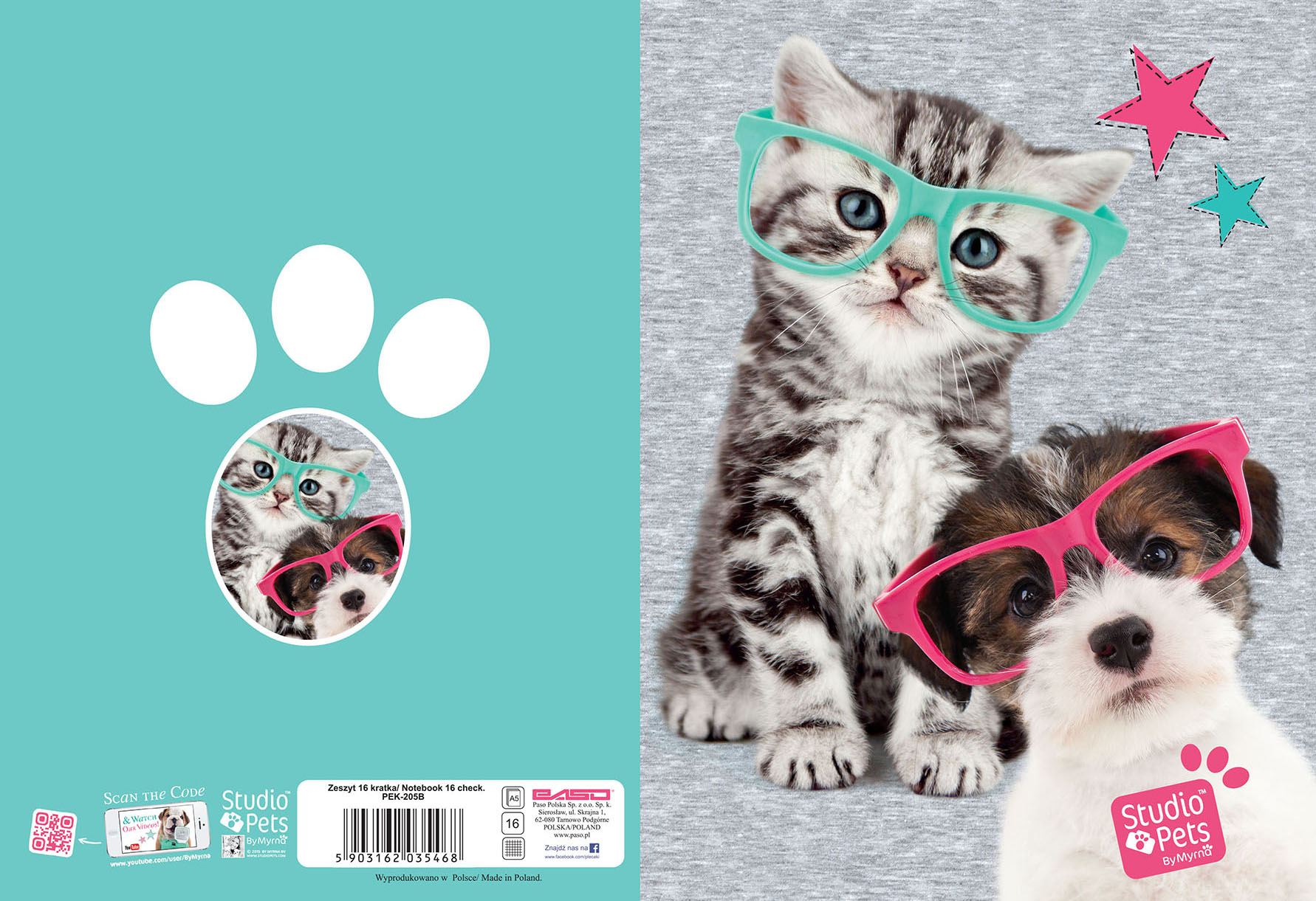 Zeszyt A5 Studio Pets w kratkę 16 kartek, brak marginesów.