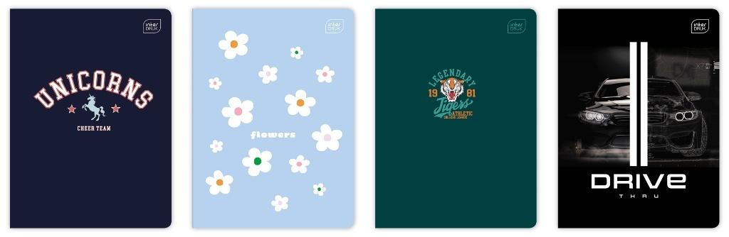 Zeszyt A5 gładki, 32 kartki, mix wzorów. 10 sztuk w opakowaniu zbiorczym. Producent Interdruk.