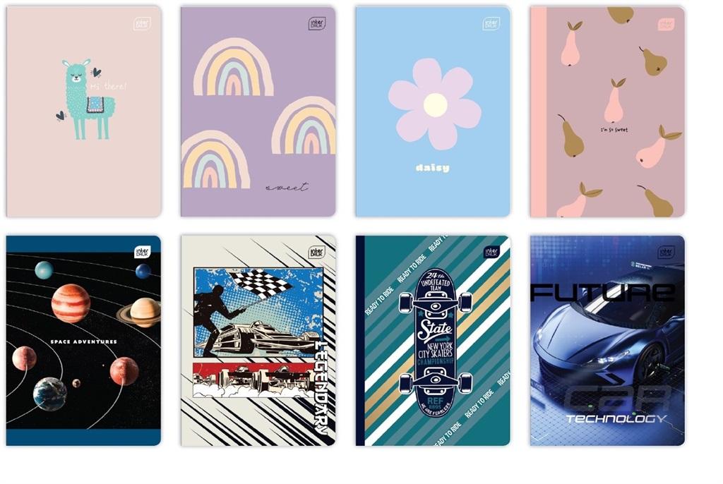 Zeszyt A5 kolorowa kratka, oprawa broszurowa, mix wzorów. 10 sztuk w opakowaniu zbiorczym. Producent Interdruk.