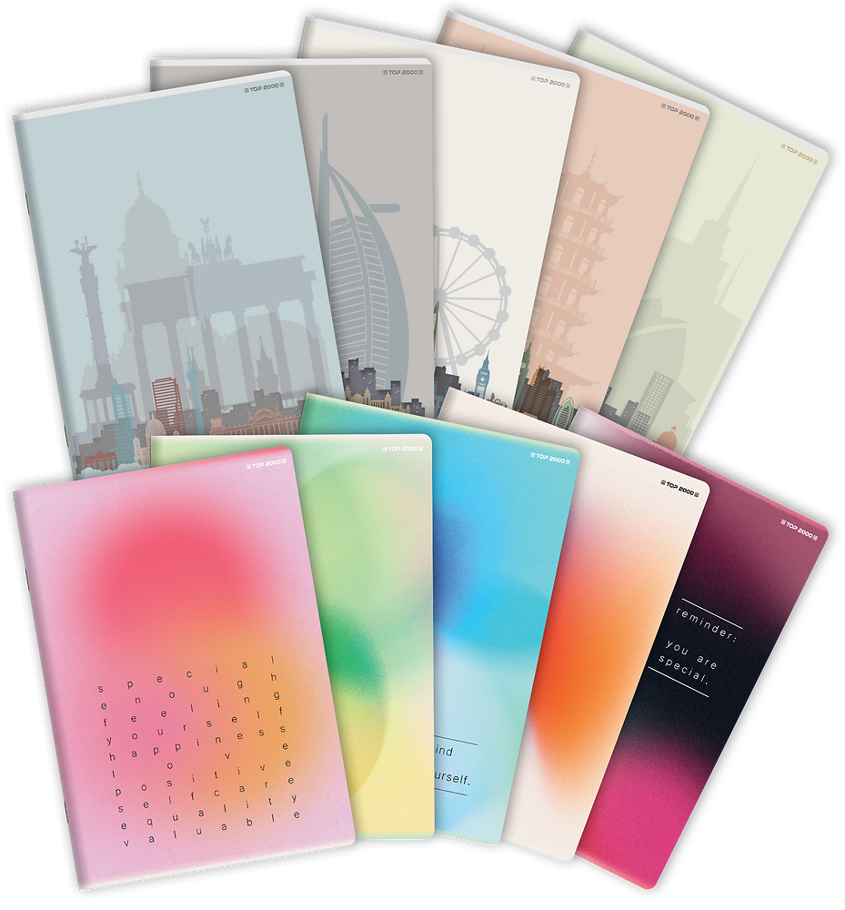 Dwie kolekcje w jednej to jeszcze więcej różnorodnych okładek do wyboru. Matowa folia i wybiórczy lakier UV nadają okładkom elegancji. Zadrukowane okładki wewnętrzne doskonale korespondują z ilustracjami na przednich okładkach. Miękkie okładki wykonane z lekkiego kartonu nie obciążają plecaka. Grzbiet zszywany zszywkami zapewnia trwałość zeszytów i wygodę pisania