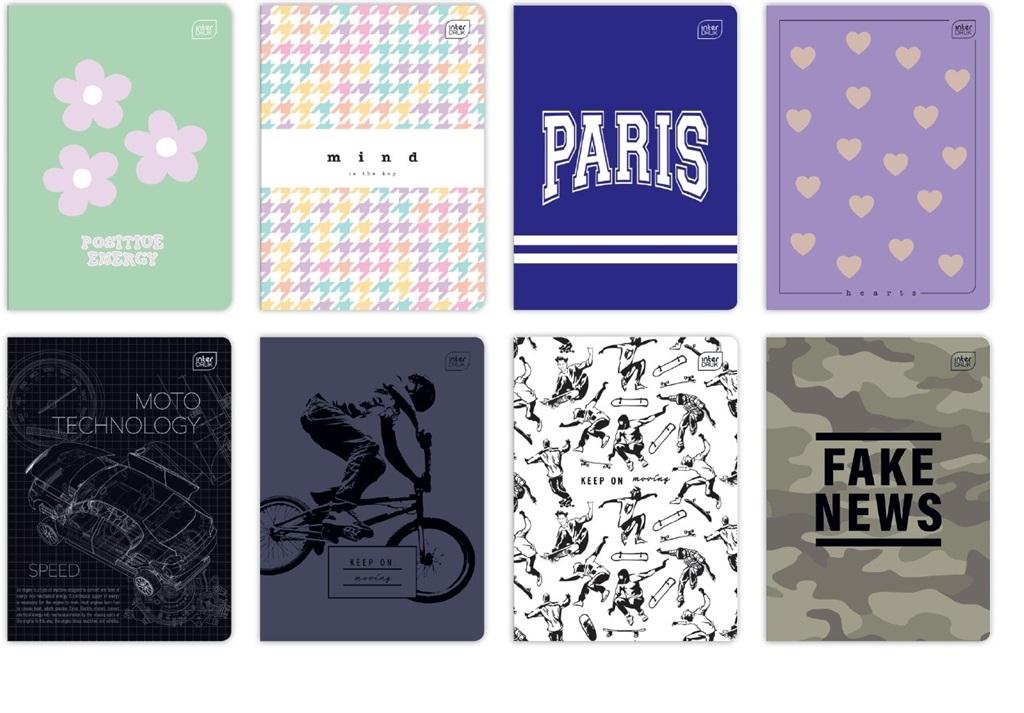 Zeszyt A5 linia, 60 kartek, mix wzorów. 10 sztuk w opakowaniu zbiorczym. Producent Interdruk.