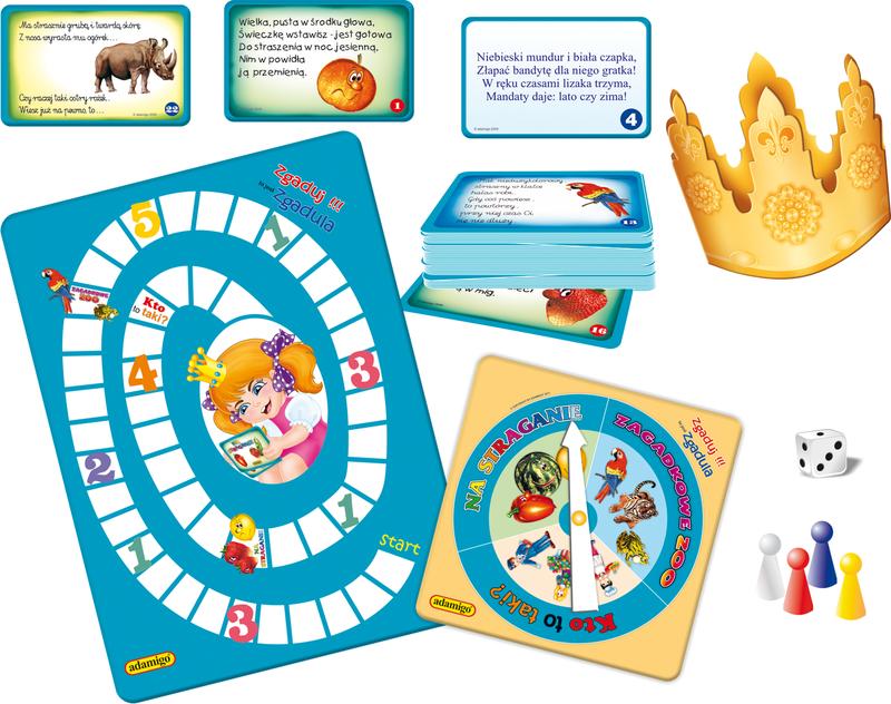 Quiz zawiera 72 zagadki pogrupowane na trzy tematy: ZOO, owoce i warzywa oraz zawody. Ten z graczy, który wykaże się wiedzą, błyskotliwością i inteligencją oraz przejdzie najszybciej drogę na planszy, zasługuje na tytuł Króla albo Królowej Zagadek i zdobywa koronę.