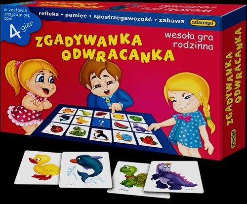 Gra „Zgadywanka-odwracanka” to gra towarzyska, w którą z powodzeniem możesz grać z całą rodziną. Kiedy rozkładane są kolorowe obrazki nie należy się popychać, wiercić, czy myśleć o niebieskich migdałach, tylko w skupieniu obserwować położenie i rysunki na tafelkach.