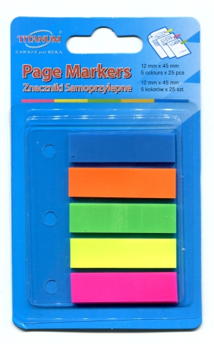 5 kolorów x 25 sztuk karteczek o wymiarach 12 mm x 45 mm
