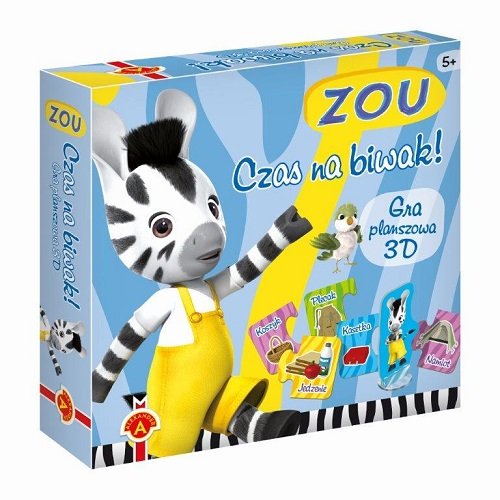 Zou, Elzee, Zinnia i Zak otrzymali cudowną propozycję. Tata Zou obiecał, że zabierze ich na biwak. Ponieważ dorośli są zajęci pracą, dzieci muszą samodzielnie się spakować. Każde z nich musi zabrać na wycieczkę prowiant oraz namiot, ciepłe ubranie, latarkę i młotek - rzeczy niezbędne na wyjeździe. Tata Zou powiedział, że osoba, która spakuję się jako pierwsza zostanie kierownikiem obozu. Dzieci są podekscytowane obietnicą, ale okazuje się, że samodzielne pakowanie bagażu nie jest taka prostą sprawą. Zawartość pudełka: plansza, 4 pionki, 4 podstawki do pionków, 5 elementów podestu, 4 komplety po 8 puzzli, 10 kart z magiczną skrzynia, 10 kart zadań, kostka, instrukcja.