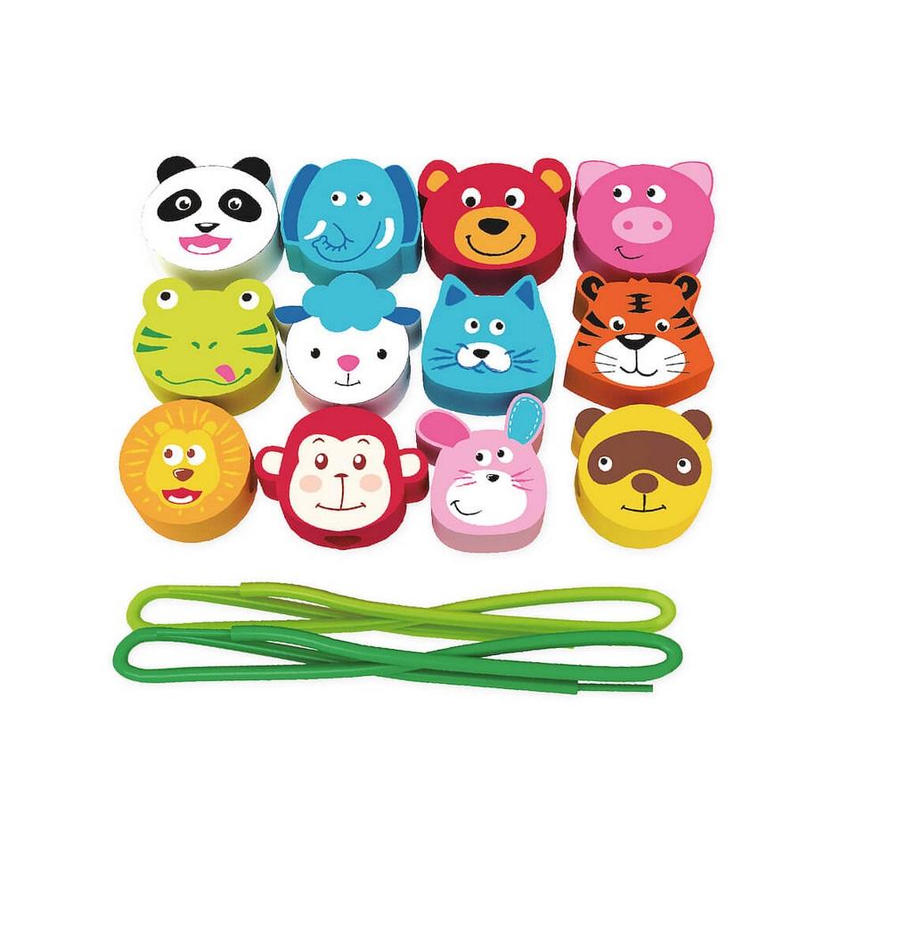 Zręczne Rączki to drewniana zabawka która rozwija sprawność manualną, koordynację wzrokowo-ruchową i wyobraźnię przestrzenną. 12 zwierzątek i 2 linki to zestaw do nawlekania. Jak się bawić? Nawlecz zwierzęta na sznurek. Dobierz zwierzęta w pary (np. według kolorów). Naśladuj odgłosy zwierząt, nazywaj je, zgaduj kolory. Twórz własne historie.