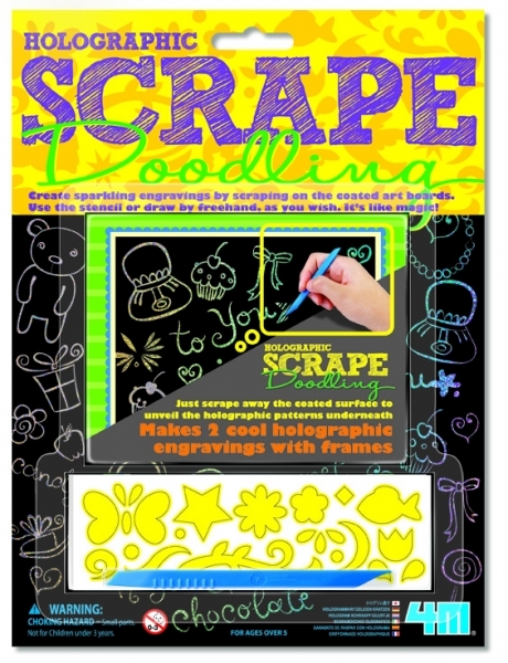 Tworzenie sztuki przez wyskrobywanie na tablicach powlekanych. Użyj szablonu lub narysuj odręczne, jak tylko chcesz. To jak magia! Wystarczy zeskrobać powlekaną powierzchnię aby odsłonić holograficzne wzory.