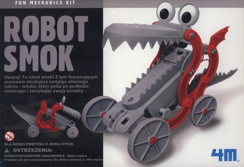 Mechanika i Zabawa to seria, która zdradza sekrety mechaniki. Dzięki niej dowiesz się m.in. dlaczego poduszkowiec utrzymuje się nad powierzchnią ziemi oraz jak zbudowane są silniki. Dzieci uwielbiają mechaniczne zabawki, które poruszają się, pływają, jeżdżą lub wspinają się. To innowacyjna seria zabawek, która edukuje i wprowadza dzieci w świat nauki i techniki! Uwaga! Nadchodzi Robot Smok! Z tym fascynującym zestawem zbudujesz swojego własnego robota-smoka, który pełza po podłodze otwierając i zamykając paszczę. Zawartość opakowania: - oczy, korpus, ogon i głowa robota-smoka - silnik - połączenia w kształcie litery S ze skrzydłami - 5 śrub - 2 zaślepki - szczegółowa instrukcja Zestaw nie zawiera wymaganych: baterii 1,5 V typu AA, małego śrubokrętu krzyżakowego. x