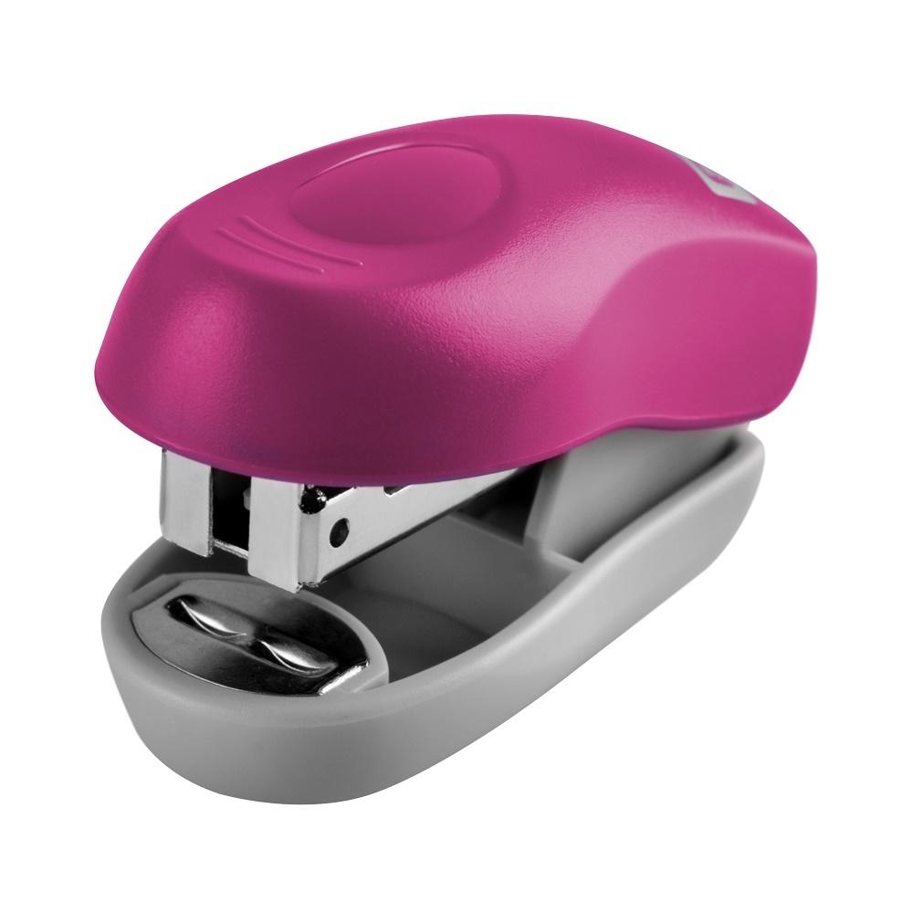 Mini znaczy maxi. Precyzja i niezawodność jest tym, co użytkownicy najbardziej cenią w zszywaczach Easy. Prezentowany model wykonany został z tworzywa sztucznego, jest lekki i łatwy w użytkowaniu. Kompaktowe wymiary zszywacza dostarczają użytkownikowi wielu możliwości można go z łatwością schować w kieszeni i zabrać ze sobą. Jest to szczególnie cenne podczas przeszukiwania materiałów archiwalnych oraz w pomieszczeniach z ograniczoną powierzchnią, jak również podczas targów branżowych i konferencji, gdzie do dokumentu lub zgłoszenia dopinana jest wizytówka. Zszywacz łączy do 8 kartek na raz, zaś oddalenie zszywki od krawędzi wynosi maksymalnie 23 mm. Model mini przygotowany został w dwóch wersjach kolorystycznych: klasycznej, stonowanej (bordowy, granatowy, czarny) oraz o żywych, zdecydowanych barwach: fioletowej, różowej, pomarańczowej i zielonej. Do zszywacza pasują zszywki o wymiarach 24/6 lub 26/6. x