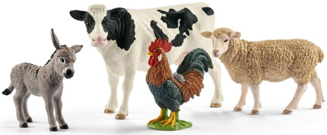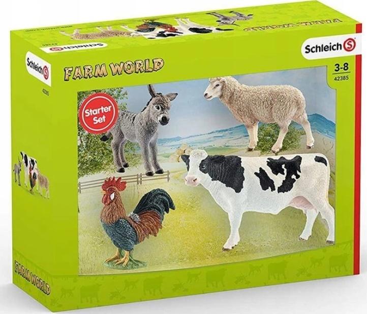 Zestaw startowy Farm World pozwala dzieciom poznać najpopularniejsze zwierzęta gospodarskie. Wyglądające jak żywe zwierzęta Schleich z najdrobniejszymi detalami pobudzają dzieci do kreatywnej zabawy. W ten sposób powstają pierwsze fantazyjne opowieści o farmie. Zestaw zawiera: figurkę krowy, figurkę osiołka, figurkę owcy, figurkę koguta x